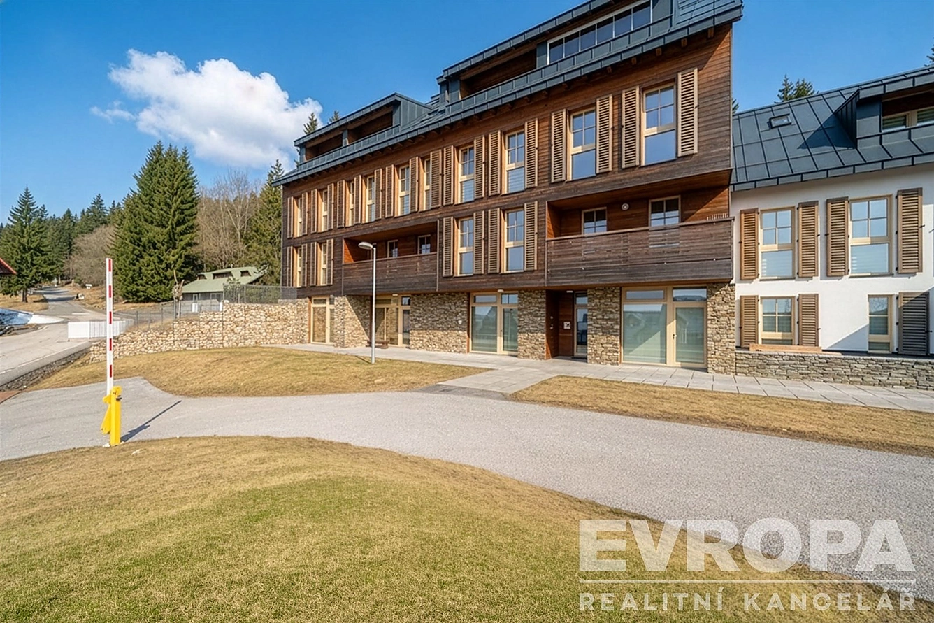 Co se týče parkování, k bytu náleží jedno garážové místo v suterénu budovy. Dopravní dostupnost je zajištěna především pro vlastníky automobilů, což je v této horské lokalitě praktickou nezbytností.