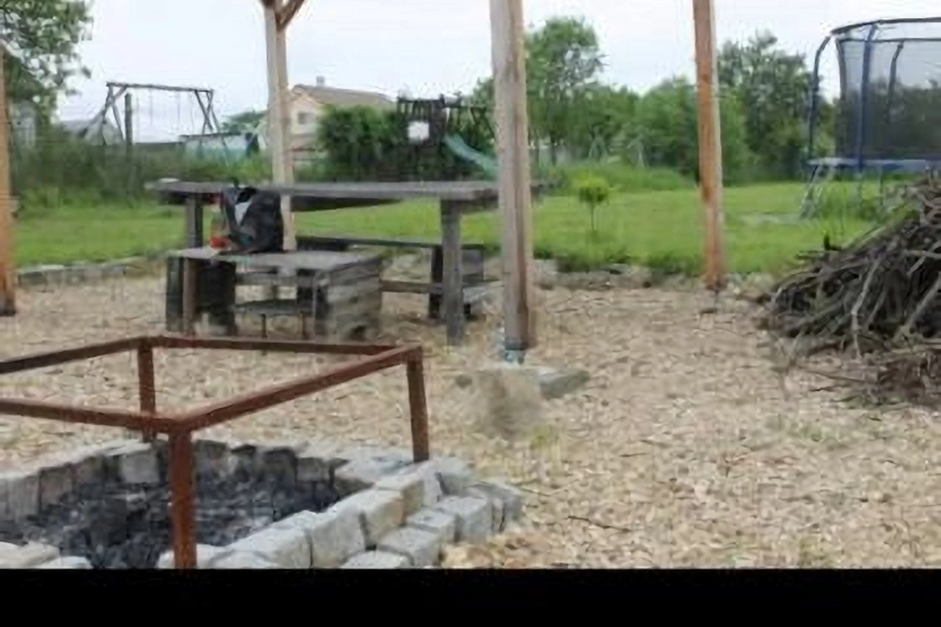Součástí zahrady je bouda na nářadí, pergola s ohništěm, záhony a několik ovocných stromů. Pozemek není v současné době pravidelně udržován, což umožňuje novému majiteli upravit si jej dle vlastních představ.